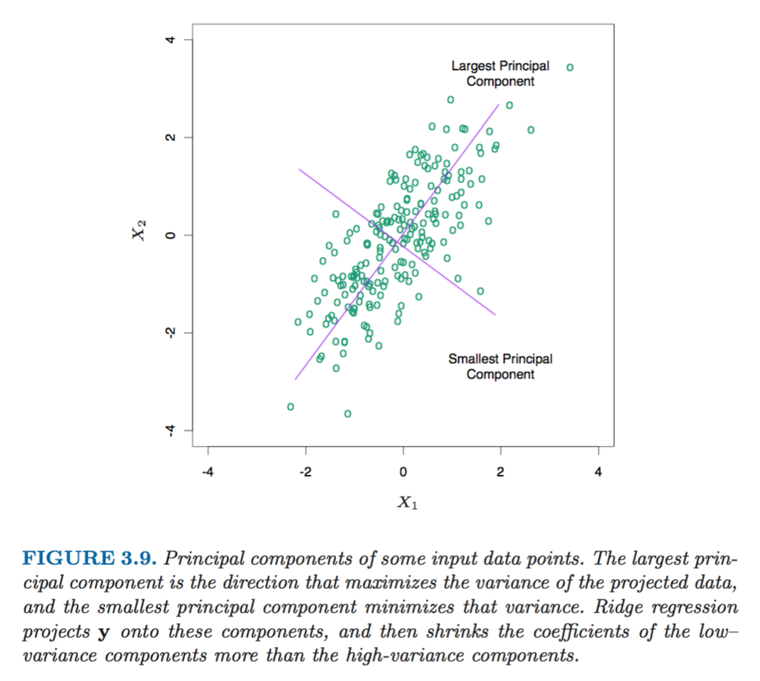 As a result the shrinkage affects the most the coefficients of variables with the smallest variance, which makes sense because since we don’t expect much variation in the data along the direction of this principal component its coefficient might as well be reduced to decrease the variance of the model